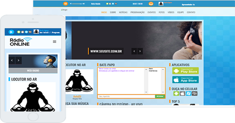 Recursos completos para você personalizar seu site e deixá-lo com a cara de sua rádio. Nosso plano Profissional já acompanha gratuitamente o site administrável + domínio + hospedagem