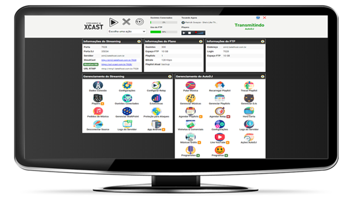 Plataforma profissional para streaming de áudio com painel de controle exclusivo.